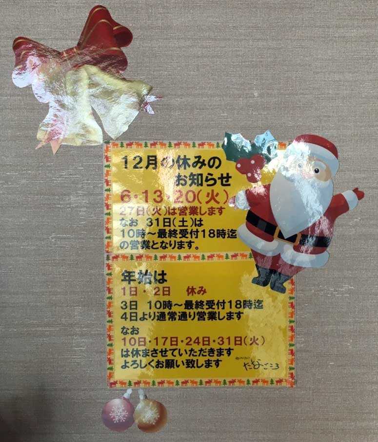 12月の定休日情報を更新いたしました。