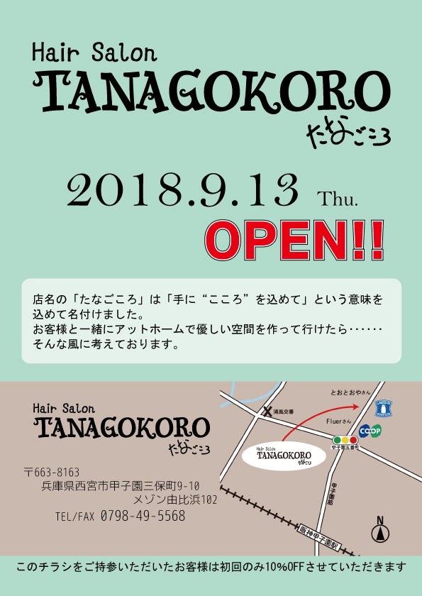 詳しくはヘアーサロンたなごころ(0798-49-5568)までお問い合せ下さい。