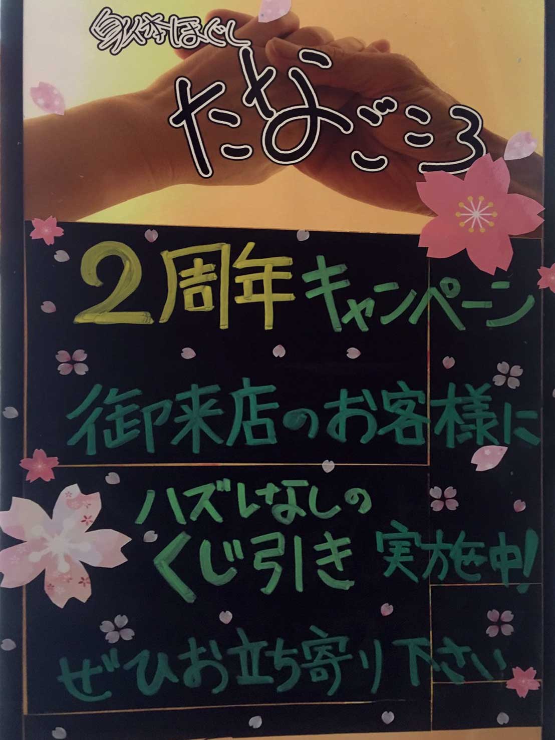 2周年を機に、心を新たにお客さあmに喜んでいただけるよう努力していきますので、これからもどうぞよろしくお願いいたします。