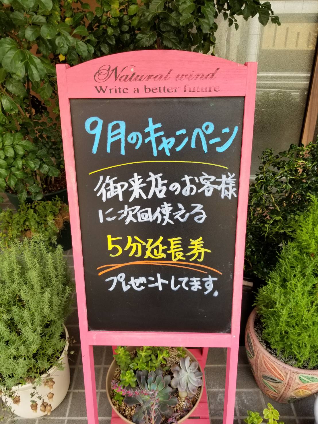 今月はご来店のお客様に次回ご使用いただける5分延長券をプレゼントいたします。